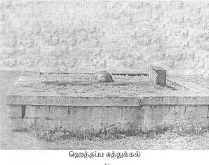 ‘Hebbaiyilu’ [First /Big Threshold]’ is the entrance to a village [Akka Bakka?]. It consists of two vertical stone pillars with a central horizontal stone containing carvings.