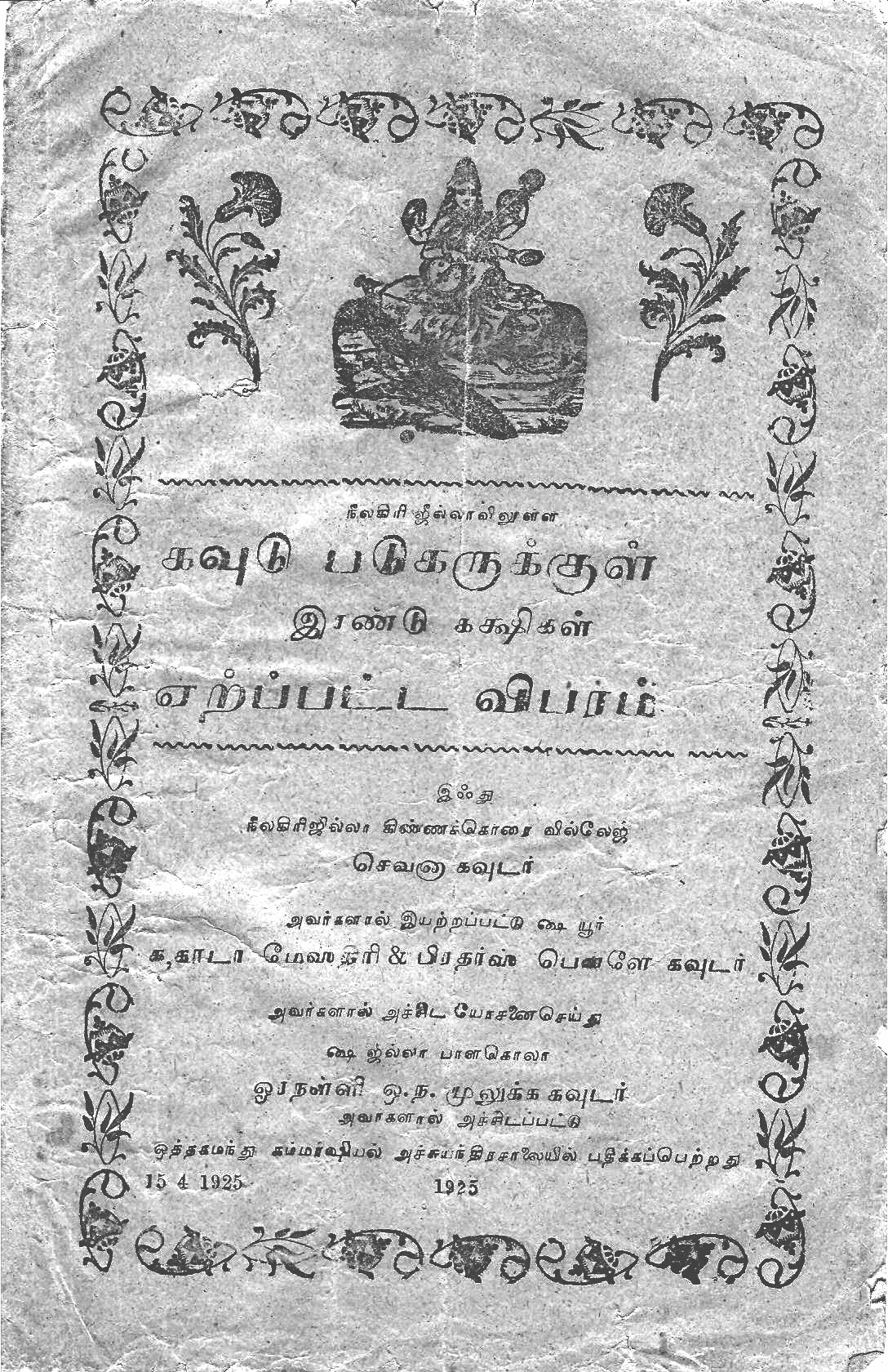 This must be the first book(let) published in 1925 about a very pressing and serious problem that split the Badagas vertically