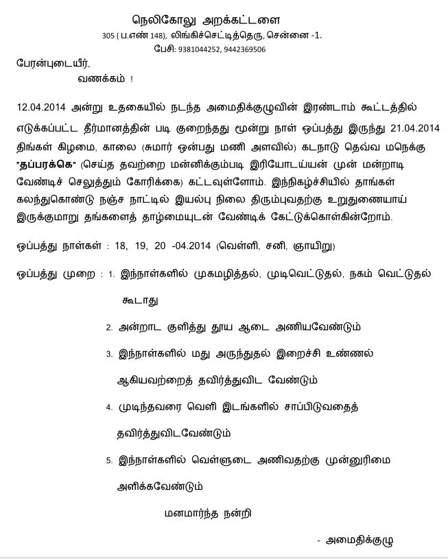 Across all Badugu villages, Nattaru have always been accorded respect by the Original inhabitants (Hatti Kattidhavakka) as people who have left their land of birth for various reasons and found refuge in another village. No restrictions have been made on their way of life, accumulation of wealth, intra hatty relationships, so on and so forth. Having said that, certain ancient privileges have always been reserved for the Original Inhabitants as the true sons of the soil, even if they happen to be a minority. Conducting Poojas inside the oldest temple built by their forefathers is one of them. There are lot of other customs in traditional Badugu culture where the Hatty Kattidhavakka (Original Inhabitants) take precedence over the Nattaru (Settlers). Disturbing these tenets which are fundamentally an integral part of Badugu way of life means disturbing the entire social fabric of the Badugu Community. Hence, as learned socially conscious men, it is very important to carry forward this message to Nattaru in the overall well being of the Community. At the same time, the Hatty Kattidhavakka should refrain from violence of any sorts in future and should maintain cordial relations with the Nattaru for a serene, beautiful Nanjanadu.