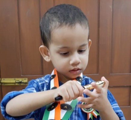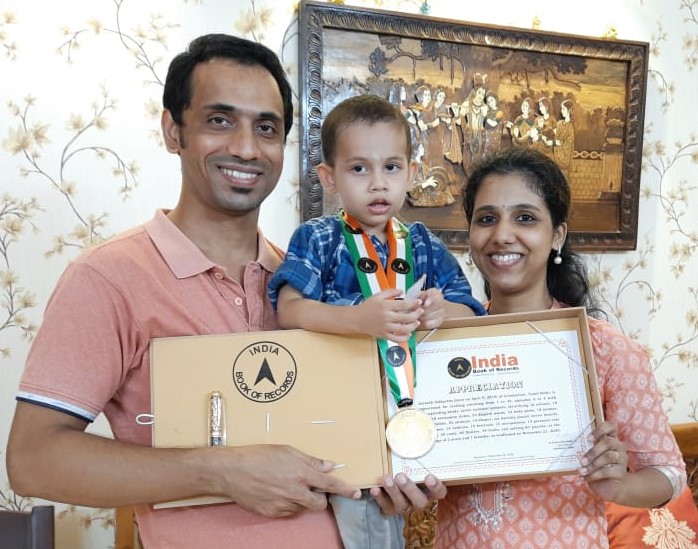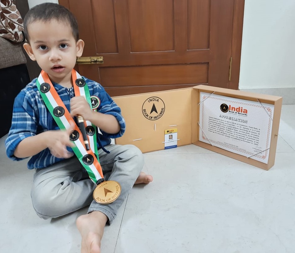 Born on 9 April 2018, he holds the record for solving 63 puzzles, reciting counting from 1 to 30, alphabet A to Z with corresponding words, identifying 52 animals, 29 fruits, 24 vegetables, 23 English words, 22 body parts,, 20 tools, 20 flowers, 18 birds, 18 stationery items, 18 national leaders, 16 colours, 15 festivals, 15 occupations, 15 personal care products, 14 vehicles, 14 shapes, 10 cartoons, seven national symbols, seven insects,, and six worship places, at the tender age of 2 years and 7 months as confirmed on 21 November, 2020.