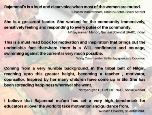Thank you so much for the support sir. It means a lot. The purpose of this book is to motivate and inspire others through the life of Dr. Rajammal.