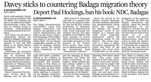 Anthropologist Gareth Davey, (a former colleague of Paul Hockings) who is currently in Ho Chi Minh City, Vietnam, has said in a recent email to Dharmalingam Venugopal of NDC (Yukesh Saravanan, from Kannerimukku and a Software Engineer based at Bangalore, confirms this), that there is nothing wrong in changing anthropological conclusions based on new evidence.