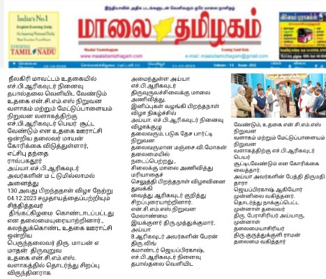 Tributes were paid to the Great Badaga Leader Rao Bahadur HB Ari Gowder at Nilgiris Cooperative Marketing Society (NCMS), Ooty, which he established in 1935 to help out small farmers from the exploitation of middlemen and to get a fair price. His contribution in the upliftment of the people of the district of Nilgiris, especially Badagas is legendary.