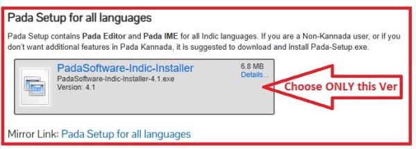 Click the download tab given above, Scroll down and choose the following version – PadaSoftware-Indic-Installer 4.1. https://www.pada.pro/download/ See the screen shot below.
